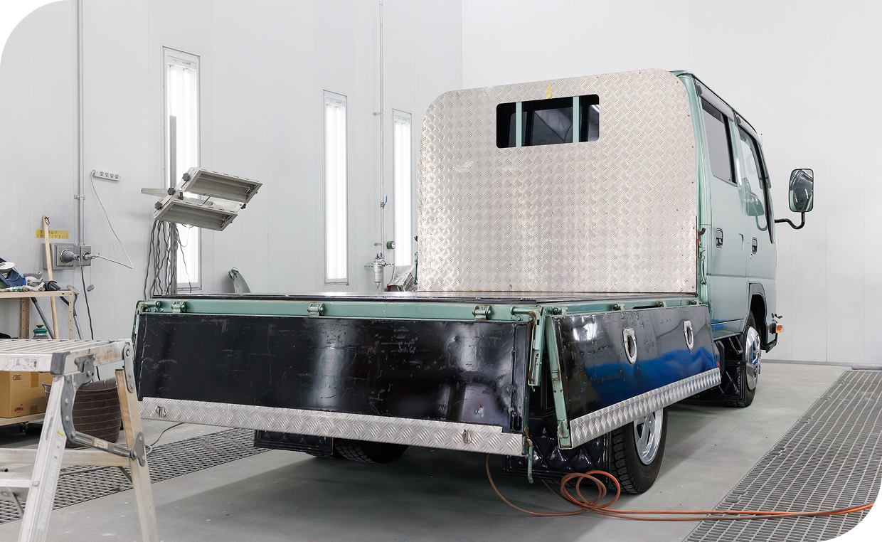 お客様の業務用途に最適化された架装・板金塗装サービスを自社で完結。荷台補強、特殊装備取付、クレーンやパワーゲートの装備など、設計〜施工〜法令検査まで一貫対応可能です。自社工場での施工により、他社で購入された車両への対応も可能で、お客様の要望を反映した最適なカスタマイズを実現します。また、事故車や経年車の鈑金・塗装にも自社で対応し、長く安心して使える状態を維持します。
